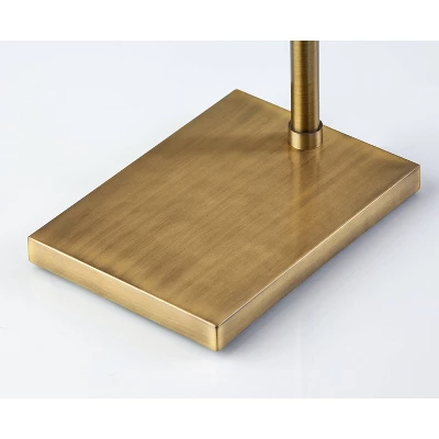 Add intrigue to your living space, reading area, or bedroom with the unique design of the Dalton floor lamp. Its simple geometry, exposed vintage bulb, and antique brass finish complement industrial and decorative glass décor. Crafted of metal in an antique brass finish, the lamp’s rectangular base and tall, narrow stem present clean angles and minimalist architecture. The long 40W vintage bulb (included) is surrounded by a glass cylindrical shade measuring 13.75″ tall and 4.325″ in diameter for a striking look. Easily turned on or off by a rotary switch located on the stem, the Dalton floor lamp is also powered by a 5′ clear cord.