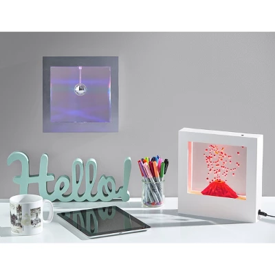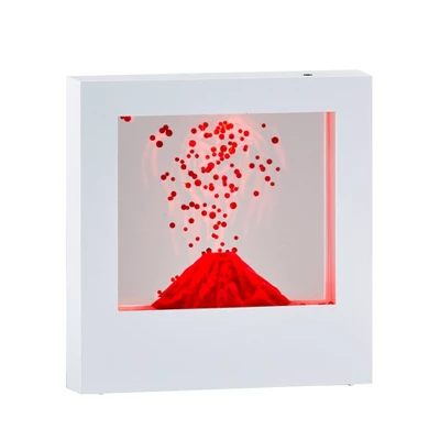 Add a soothing phenomenon to your bedroom or dorm room with this unique Volcano Light Box! Simply turn on with a simple push switch located on the frame. The box will light up and the volcano will start oozing with lava-like beads. Watch as the lava flows and glows creating a calming, peaceful ambience. This light box is perfect for small spaces like dorm rooms or apartments as it can sit on the table/desk or be wall mounted. It is the perfect addition to a gallery wall or can stand alone as a decorative nightlight. This item can be battery operated (4 x AA) and also ships with an 8′ cord to plug in, offering options to suit the users needs.