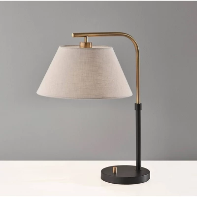 Introducing the 3955-01 Fletcher Table Lamp, a stunning embodiment of mid-century modern style with a captivating mix of black and brass metal finishes. This table lamp seamlessly blends contrasting metal elements, creating a visual masterpiece that adds a touch of elegance and intrigue to your decor. Topped with an off-white textured fabric shade, the Fletcher Table Lamp stands at a height of 21.25 inches, making it a versatile and chic addition to your tabletops. With an on/off rotary switch on the base, this lamp effortlessly combines style with convenience, illuminating your space with ease.