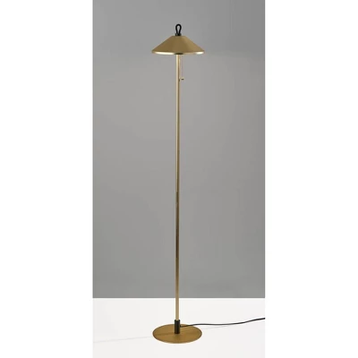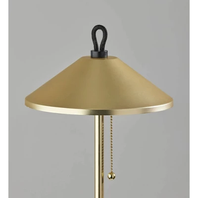 In classic form, the Kaden floor lamp’s mixed metal finish and elegant design adds a polished accent to your space. Featuring a slim round base, thin pole and tapered conical shade, the dual-metal design is crafted with a brass finish and beautifully contrasting black metal accents. Two 5W replaceable LED bulbs are included and illuminate your space with 450 lumens of warm light. A pull-chain switch in brass finish easily turns the light on or off, while the lamp is powered by a black fabric-covered cord. The Kaden floor lamp is also available with a black metal finish and brass accents. Complete your decor with the coordinating Kaden table lamp.