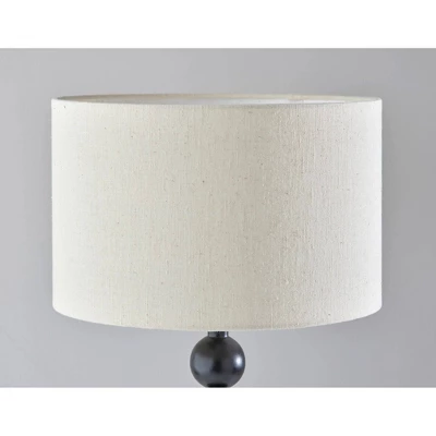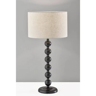 The Orchard table lamp illuminates your space with elegant symmetry and an eye-catching design. Constructed of black wood, a round base supports a matching tall stem designed as a series of stacked balls. The monochrome black of the lamp’s body is complemented by the cream-colored linen drum shade. Easily operated by a 3-way rotary socket switch, you can adjust the brightness from a 100W bulb between low, medium, and high to suit your lighting needs. To coordinate with rustic, farmhouse, or coastal styling, this lamp is also available with a natural wood finish. Complete your decor with the Orchard floor lamp.