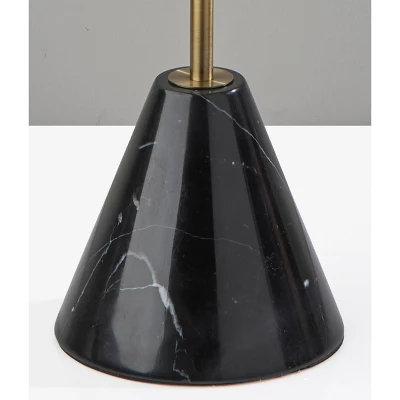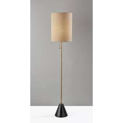 Featuring a rich blend of materials, the Tucker floor lamp adds refinement to any room. A tapered cylindrical black marble base is an elegant accent to the simple silhouette of the lamp and supports a long tube with antique brass finish. Topping the lamp is a beige woven fabric drum shade that softly diffuses the light from a 100W bulb. Complete your decor with the coordinating Tucker table lamp.