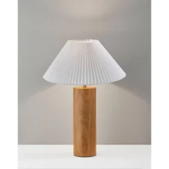 Adesso Mayfair Table Lamp Natural: ETL Listed, Wood Body, Polyester Drum Shade, 27.5″ Height
