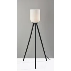 Adesso Kinsley Floor Lamp Natural: Tripod Base, Frosted Ribbed Glass Shade, ETL Listed, 100W