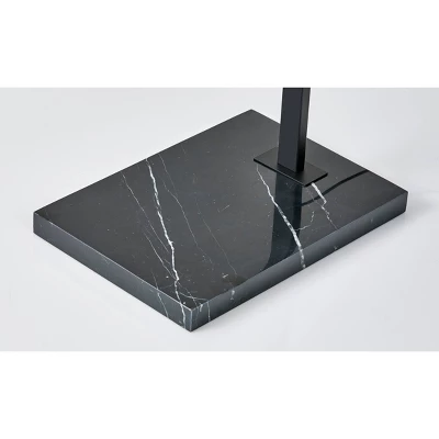 The Sonic floor lamp’s dramatic arc of black metal illuminates any room with 2,000 lumens of energy-efficient 24W LED lighting. Rated to last 50,000 hours, the LED lighting is integrated into the lamp and softened by a frosted diffuser. The slender rectangular tube extends more than 7′ and offers a smart switch with a full-range dimmer and five settings to find the perfect color temperature for your mood, from crisp to warm, at the touch of a finger. Anchoring the lamp is a rectangular black marble base that adds a hint of elegance. This lamp is powered by a 5′ black cord. The Sonic LED arc lamp is also available with an antique brass or brushed steel finish.