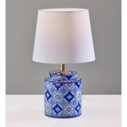 Adesso Claremont Table Lamp Antique Brass: Off-White Linen Shade, Dual Pull Chain, ETL Listed